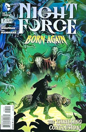 Writer Marv Wolfman wraps up his latest NIGHT FORCE storyline here in a satisfying way. The somewhat complex storyline involving generations of arranged pregnancies directed by strange otherworldly beings kinds of falls away from the main characters who finally get to make some decisions and actions of their own and take charge of their own future. There are some clever games played with time and repeating events, a revealed object of power, and as usual Baron Winter and his leopard partner acting cranky even while doing the right thing.