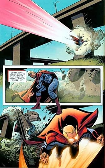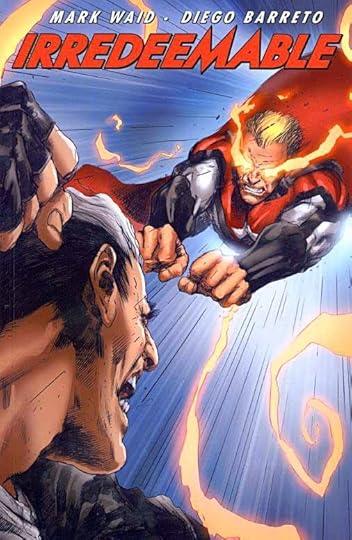Mark Waid’s character The Plutonian is essentially Superman gone very bad indeed. His character Max Damage is a villain trying to do good. Both their stories take place in the same universe, on the same Earth, so it was inevitable that they’d face each other. That’s what this book is leading to. It’s also about how they became linked in tragic childhood events, why things turned out as they did for each of them. In the present, Plutonian is being lectured by two very powerful beings. Are they his parents? In a parallel track we see the origins of Max Damage as told in flashbacks and letters. The big confrontation promised on the cover never quite happens, though earlier ones do. I’m guessing there’s another volume coming!
