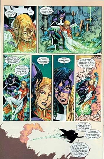 Writer Paul Levitz has found an interesting and clever way to tell this story. It’s divided into two sections. In the present, Huntress and Power Girl are facing a monster whose power seems to increase with every blow they give him, and who sucks up energy like Gatorade. The monster has trashed a nuclear facility in Japan as the story opens, and it only gets worse from there. In the past, we see the two women recently arrived on this particular Earth (they’re from another one), trying to figure out a new role for themselves, as well as how they got there, and how they might get back where they came from. This flashback story is embedded in the center of the other story, which comes both before and after it. Both stories are fun; the present one has all the action, the past one is gradually exploring the mysteries of the series and the relationship of the two friends.