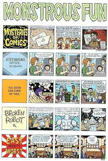 Evan Dorkin is back with more “Milk and Cheese,” and while I disliked the last one, I found this chapter pretty funny and entertaining. Maybe because it’s mostly lots of four-panel gag strips, five to a page. There’s humor in the individual gags, and some of them repeat and build on that to good effect.
