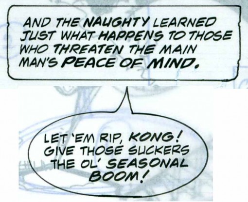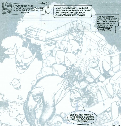 A closer look at one balloon. At this size, the lettering is a little rough in spots, but certainly quite readable and very much in Gaspar’s style, reminding me of what he was doing for DC in the early 2000′s.