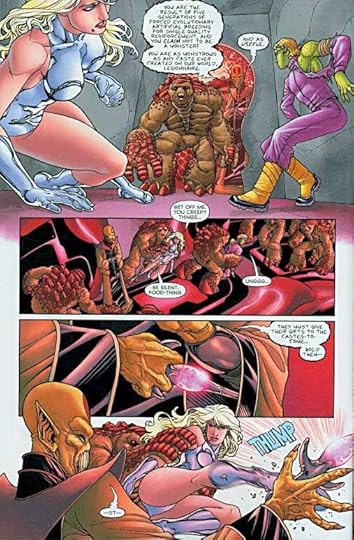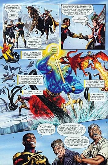 I wanted to like this book. I like the idea of it: Kirby’s many later and/or unused concepts appearing in a new series owned by the family. Unfortunately the execution doesn’t work for me, and these will be the last issues I’ll be reading. The script by Kurt Busiek makes a valiant attempt to tie things together, especially in issue 6, but there are just too many characters, too many storylines, too many different teams and objectives and struggles and cataclysmic events. When everything is super and cataclysmic, nothing really has much impact, it all kind of runs together for me. The male and female regular folks that began as the viewpoint characters at the outset of the series are still here somewhere, but again largely lost in the shuffle. Despite the long roster of characters already in play, new ones are still being introduced in issue 6: