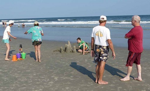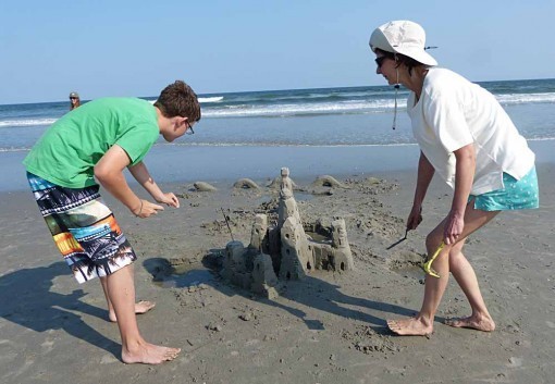 When Ellen’s family is here they usually do a bit of sand sculpture at the beach, and I join in if I have time. I haven’t gotten to the beach much this year, but on Thursday I admired this tower by Zach and castle by Ann and Ellen.