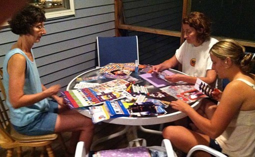 Ellen, Ann and Cristina scrapbooking on our porch.