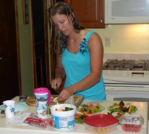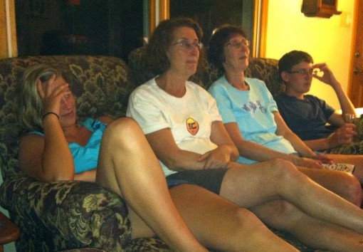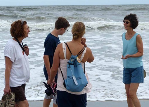 The Greene family has returned home after their week with us, having enjoyed five good beach days and lots of pleasant evenings. Here are a few photos. Ellen, Ann, Zach, and Dave (at right) talking to his friend Danny.