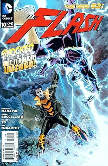 Writers Francis Manapul and Brian Buccellato continue to bring in their own versions of long-time Flash villains with the Weather Wizard featured this issue. It takes place in what I think is a Central American country and involves a family involved in crime and drugs. The story is well-told, but this Weather Wizard is not appealing to me as the one from the 1960s. He seems less sure what to do with his power, and much less in control of the situation and his own life than would make for a really threatening villain. True, he does create an impressive flood that Flash must deal with in an action-filled opening sequence, but then tries to run away. You can’t run away from The Flash.