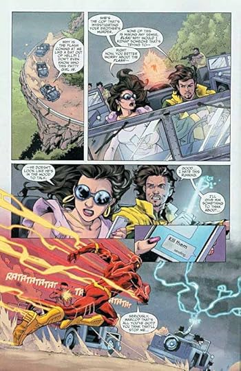 Guest artists Marcus To and Ray McCarthy do a nice job filling in for Francis Manapul, who I’m sure appreciates the help, though their work is in more traditional comics style with black linework well colored. Looks good, but it’s not as fresh and innovative as Manapul’s own art on this title using gray washes.