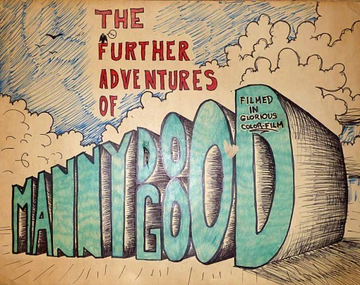 In grade school my friend Tom Burden had an inexpensive 8mm movie camera, and he and I had some fun with it, making silly silent comedy short films. None have survived, as far as I know, but when clearing some old stuff out of our storage room today I came across this title logo I did for one of them. My only excuse is that I was about twelve years old at the time! As you can see, I was already influenced by the kind of telescoping seen on many comics logos, and some epic movie logos of the period as well.