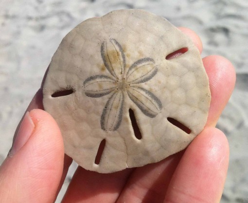 Ellen and I went for a long walk through the shallows, as we often do, and I found this Sand Dollar shell (actually the exoskeleton of a creature related to Sea Urchins). It’s in nearly perfect shape. I’ve been going to the beach regularly here in New Jersey since I was a small child, so close to 60 years, and this the the very first Sand Dollar I’ve ever found here. Found some on a beach in Georgia, yes, and in Florida and the Caribbean, but never in New Jersey. Pretty cool! I’ll let it sit in a sunny spot until it gets bleached white, I think, then put it up on display somewhere in the house.