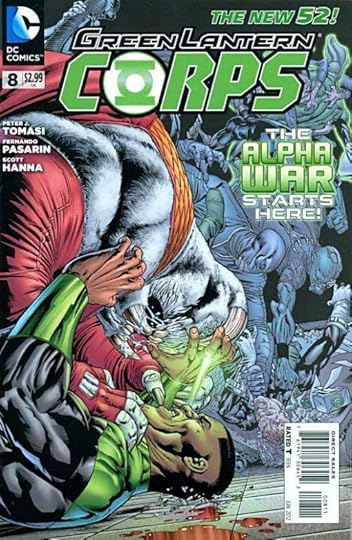 This issue seems to be the setup for a new conflict between the Alpha Lanterns and the GLC. That feels like something we’ve already seen, but on the other hand, I kind of like the Alphas, so I’m interested to see where this goes. As usual, the Guardians are behaving oddly…they suddenly seem to think very highly of Guy Gardner. And speaking of him, the issue ends with a major brawl in his bar on Oa. (The very idea of a bar on Oa is kind of amusing, I think.) In all, not a bad issue from writer Peter Tomasi.