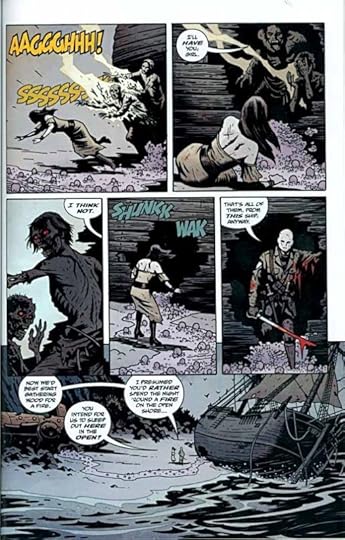 The art by Ben Stenbeck has a strong Mignola flavor, such that Mike may well have drawn rough layouts for him to follow, but that’s just my guess. The story has many shuddery moments as well as some poignant ones, but I have to admit I didn’t find Lord Baltimore as interesting as other Mignola protagonists. I’m not sure why, but perhaps it’s because beneath his anger, and despite his wooden leg, he seems a rather ordinary person. Nothing wrong with that, but he pales in comparison to Hellboy and other members of the B.P.R.D. Still, a good read.