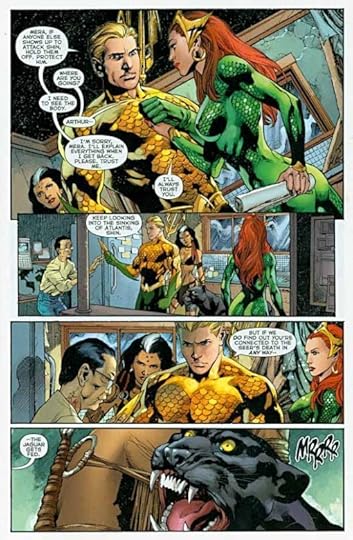 Writer Geoff Johns continues to build new backstory for Aquaman in this tale of another super-group of sorts he was a part of in the recent past. A group called The Others we’ve never seen or heard about before, whose story is unfolding in flashbacks. It’s an international group with some interesting characters, and they are apparently being hunted down in the present by Black Manta, that long-time Aquaman villain, which is why the story is coming forth. Interestingly, Mera, Aquaman’s wife, does not know anything about it either, and we can see some tugging between them over trust issues. A nice mix of things going on here that lifts it above the average superhero fare.