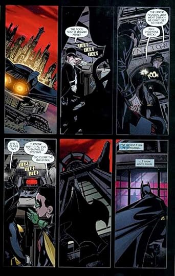 The art is mainly by Trevor McCarthy, and is highly stylized and designed. I liked the design elements, though I wasn't crazy about his handling of some of the human characters. The one that bothered me the most was the very odd depiction of The Penguin, as seen briefly above. For the most part I was carried along by the story well enough that the book worked okay for me. The other thing I didn't quite buy was the reason given for the behavior of the main villain. Can't say too much about that, but it was rather unscientific at least, if not completely bogus.