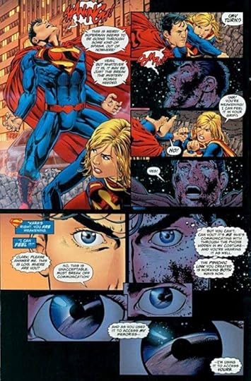 This issue wraps up the storyline by George Perez of the false, angry Superman, who vents all over poor Supergirl in this issue, even while she's speaking to him in Kryptonian. You'd think that would get her on his nice side, but no. In fact, the origin of this impostor is more complex than that, and it takes several pages of exposition to get it all explained. That slows things down between the big battle, and the return of the real Superman, but everything gets worked out, and there's time for some nice character bits with Metropolis friends at the end. Not a bad story, if perhaps too complex at times.