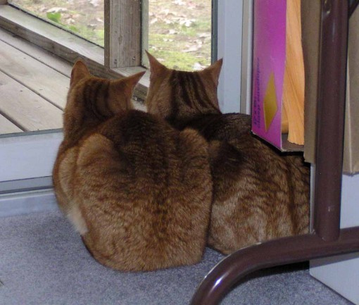 It's finally starting to feel like winter around here, though not so much today. Still a little cold for the cats on the porch, so they get their birdwatching in through the sliding door in my studio.