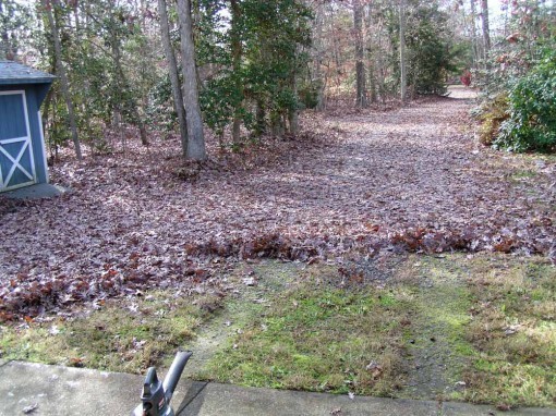 This week we had the Big Drop, when most of those oak leaves decided it was time to go. We also had two days of rain making them nice and wet at the bottom. Sometimes I rake, but today I used the leaf blower. I think they each take about the same time.