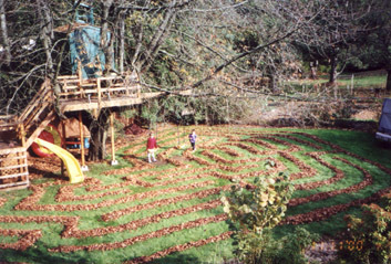 When I was a teenager I used to make leaf mazes in our family's large yard, similar to this one I found a picture of online. Then my brothers and I would play tag in them. That's about the last time I remember having a lot of fun raking leaves!