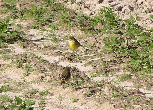 The fields and woods here were full of birds, after a good-sized migration the night before. We had good looks at about six warbler species, like these two Palm Warblers, about 10 sparrow species, about 10 raptors, and quite a few other birds.