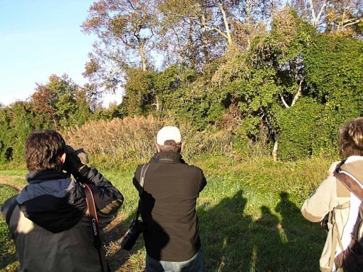 Folks began arriving, and as sometimes happens there were nearly as many leaders as participants, which meant I probably wouldn't be saying much. Especially with the main leader being Michael O'Brien (third from left) here giving the introductory shpiel. He's a world-class birder and I always learn things when I'm out with him.