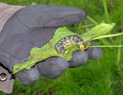 While bird pics are tough with my camera, especially small birds, insects are easier. Here's the large caterpillar of some kind of Sphinx moth that someone found.