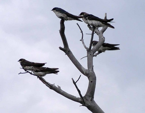 Tree Swallows are beginning to gather here in preparation for their southward migration next month. There are waxy bayberries and red cedar berries for them to eat along the trail.