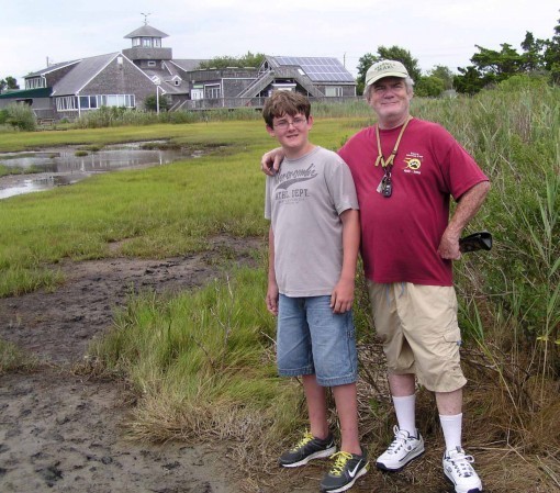 Ellen's nephew Zach and his father Dave with the handsome Wetlands Institute buildings behind them.