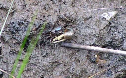 In the mud were lots of tiny Fiddler Crabs, the males like this one waving their large claw around to threaten other males and attract females.