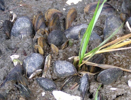And a very common shellfish in the marsh mud are these Ribbed Mussels. Not tasty to humans, which is why there are lots of them.