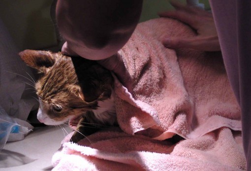 Each cat gets a good toweling-off, and then will spend the next few hours licking. By this evening they'll all be dry, fluffy and oh-so-soft. And probably much happier.