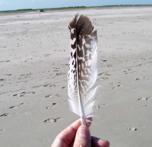 This feather from an immature gull was a nice find. I took it home for the cats to play with, and tied to a string on a stick, entertained them for about half an hour last evening. They love it.