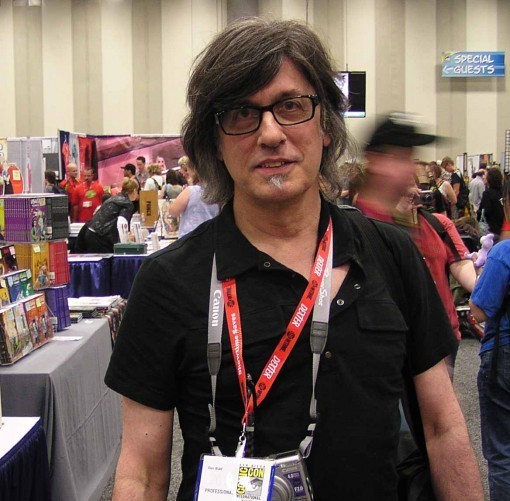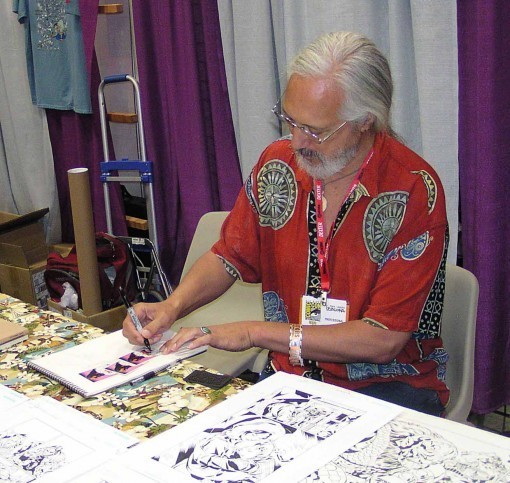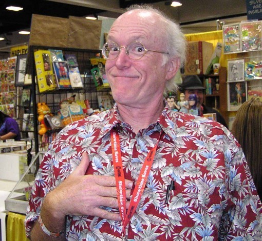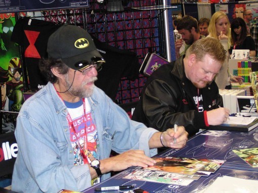 After a bit of unnecessary extra walking (being too stubborn to check the map on my phone), I found the area to get my Pro badge and hit the convention floor around 2:30. As in most years, I'll be wandering around taking in the entire con experience, meeting old friends and workmates to chat, attending a few panels and events, having dinner with friends, and generally enjoying myself, so that's the con experience I'll be reporting on here. Above, writer Len Wein signs a new SPEED RACER comic, which he told me he's editing and doing some writing for. Len is also writing a few things for DC Comics again, which I was happy to hear. Most of them are sort of "retro," and I asked him how he felt about that. Len said it's kind of odd for him. He likes getting the work, but wonders why no one ever thinks of him for more contemporary properties.