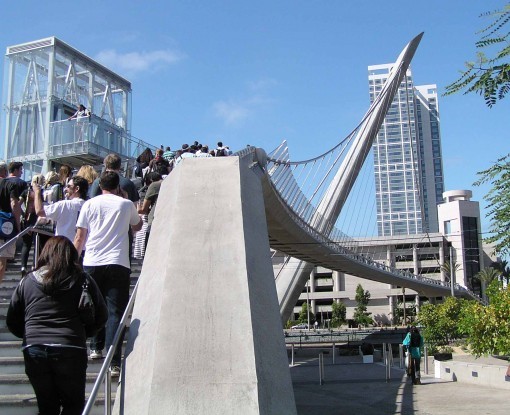 Instead of crossing the tracks there I went further down to the new pedestrian bridge connecting the ballpark and the Bayview Hilton, as I hadn't walked across it yet.