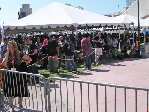 BBC America had promotions for the new Dr. Who series in a few places around the Exhibit Hall, this large Tardis being one of them. I wondered why it was so large until one of the booth workers came out of it with boxes of product for the rest of the booth. Must be quite handy to have a storage space that's larger on the inside. Hmm, hope the Daleks don't find out…