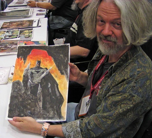 Lots of pictures today, so I'm going to try for briefer descriptions. Here's Scott Hampton at his table with a great Batman commission piece.