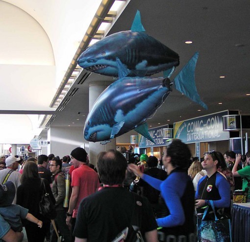 You'll probably see these radio-controlled flying shark toys in other con photos, but they are quite cool.