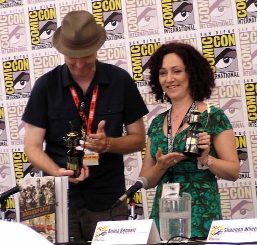 In the afternoon I attended the spotlight panel for Anina Bennett and Paul Guinan, where they were surprised to receive Inkpot Awards, and I enjoyed hearing about how they got into comics, their careers in the business, and lots about their latest project, BOILERPLATE, which I have at home but haven't read yet. It's been optioned for a film by J.J. Abrams, creator of "Lost," so I hope that works out.