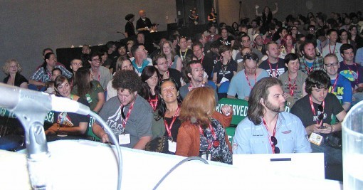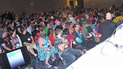 My day at the con ended on the annual FABLES panel, along with a growing lineup of artists and writiers, which included cover artist Adam Hughes this year. As has become my tradition, I took some audience photos from the podium.