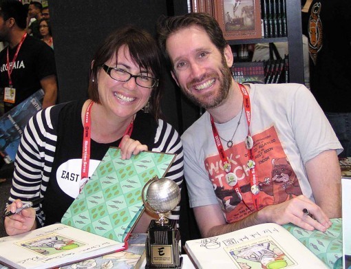 I also talked with Gabriel Ba, on the right here with his booth-mate Rafael Albuquerque, and wished them well at the Eisners tonight.