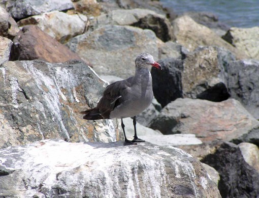 Along the water's edge are rocky breakwaters with a few birds like this Heerman's Gull. There's a fishing pier, and picnic tables where some locals were enjoying their Sunday afternoon.