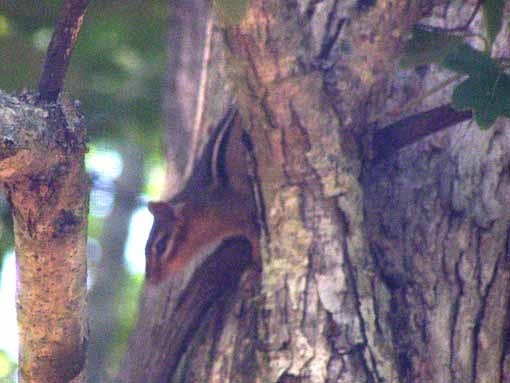 …a chipmunk! Not sure if it's the same individual we had last summer, but he zips around fearlessly right near the porch, driving the cats crazy. Tigger lodged a vocal protest with me, but I told him there's nothing I can do about it!