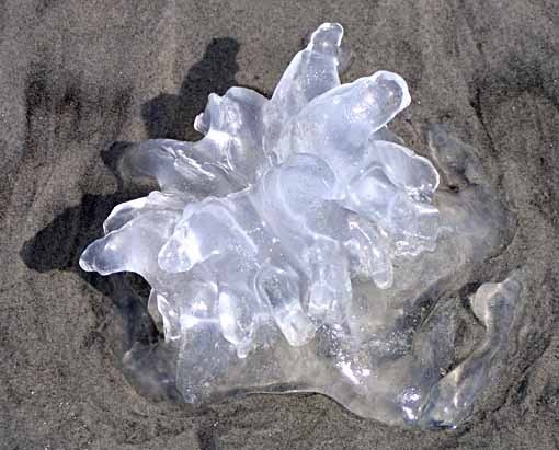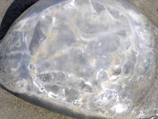 Scattered along the beach were about a dozen large jellyfish, I believe the species "Lion's Mane," though I could well be wrong. The top part is a mushroom-like cap. Looking down into this one I can imagine some kind of dying alien intelligence looking back.