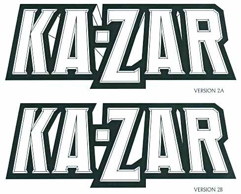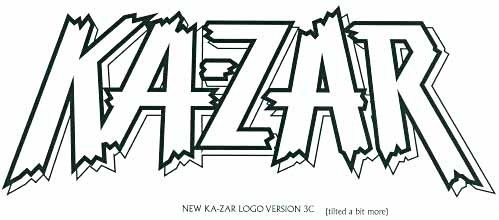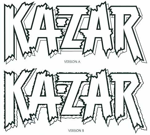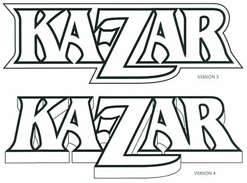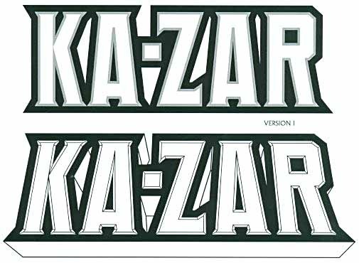 In 1996 I was asked by then Marvel editor Matt Idelson to submit designs for a new Ka-Zar ongoing series by writer Mark Waid and artist Andy Kubert, one which I'd also be lettering. I always liked the character when he appeared in the X-Men books, even though he's similar to Tarzan (or maybe because of that), and I was happy to get the assignment. All the logo ideas I submitted were done on my Apple computer. These two started with a block-letter font I designed, adding a gray outline above and bevelled facets below, inside a heavy black outline to pull the letters together. Version 2 tilted the letters a little, with the top tilted away, and added a telescoping drop shadow, open for color.