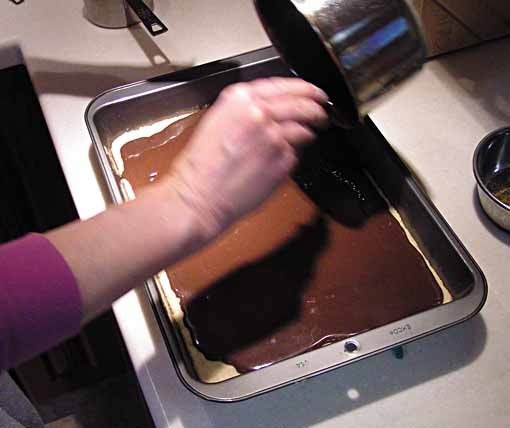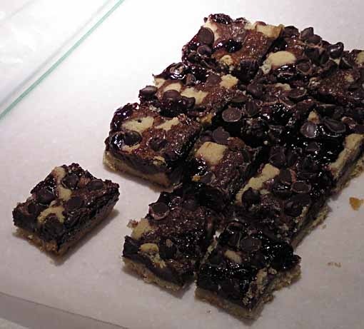 After baking we cut it into small squares. I liked them better than Ellen, she didn't think it tasted chocolaty enough, so I doubt we'll make them again, but at least they were easy. Those three batches were all made Saturday.
