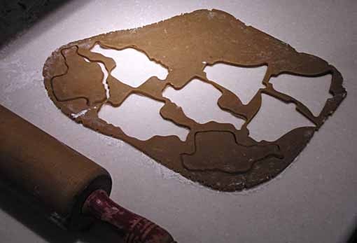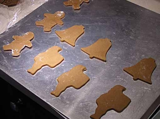 On Sunday Ellen did most of the work on the more time-consuming and somewhat difficult Gingerbread shaped cookies, making the dough, chilling it, rolling and cutting shapes.