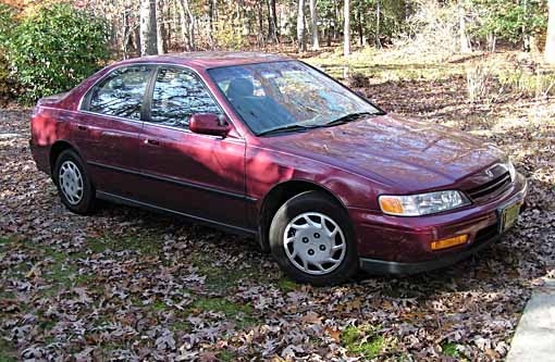 I bought this Honda Accord new in 1994, and it's been a great ride ever since. It has a few small dents and scratches, but held up well for 144,000 miles. After about 10 years and 100,000 miles, though, I started talking about getting a new car, "as soon as this one has some kind of major and expensive problem." It never did, but as happens, gradually all the little problems reached a threshhold, and when the radio died a few months ago, that was the clincher. It was time for it to go.