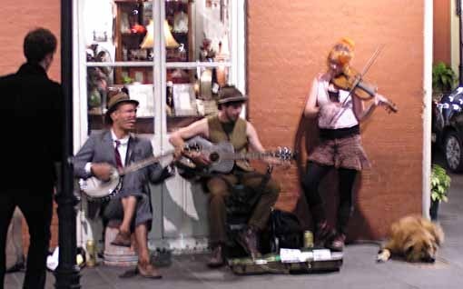 The French Quarter is full of street musicians, some good, some middling, some excellent. Ellen liked this group we passed walking back to our hotel, doing an old blues number, especially the dog. Picture's out of focus, but I think captures the spirit well.