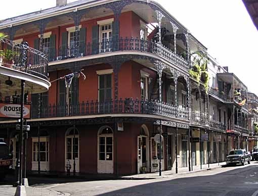 Walking around New Orleans' French Quarter this morning, here are a few buildings that caught my eye. The prevailing syle is brick structures with large balconies decorated with elaborate ironwork.