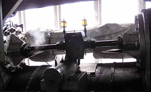You can see the massive engine at work down below, this is only a small part of it. The engine is the oldest part of the boat, salvaged from an older one and put in a new steel body in the 1970s.