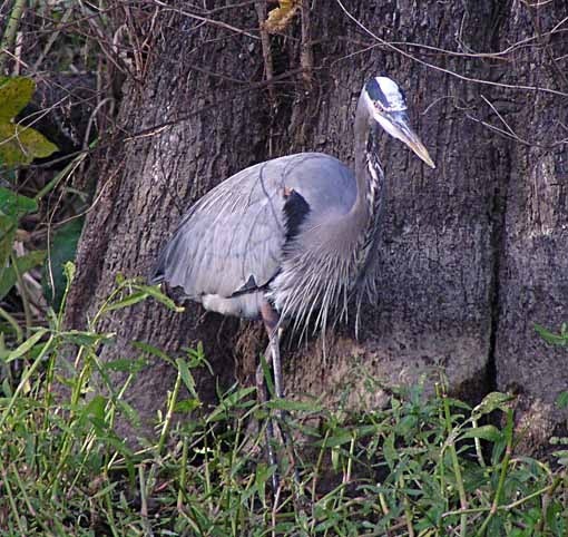 Great Blue Herons were the only birds we saw close up, and they are, of course, wonderful to see. A few other birds were seen flying at a distance, or heard, but this was not a great tour for birdwatchers like us. We enjoyed it, though. Our guide's well-rehearsed patter did fill us in on local life, and the fishing village we passed through, accessible only by boat, was quite interesting to see and learn about, as were the stories of Katrina's impact on the area, which we heard more of from our bus driver on the way out.