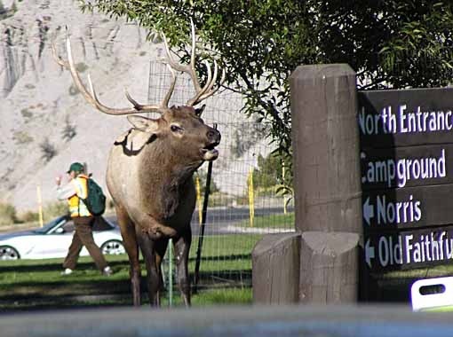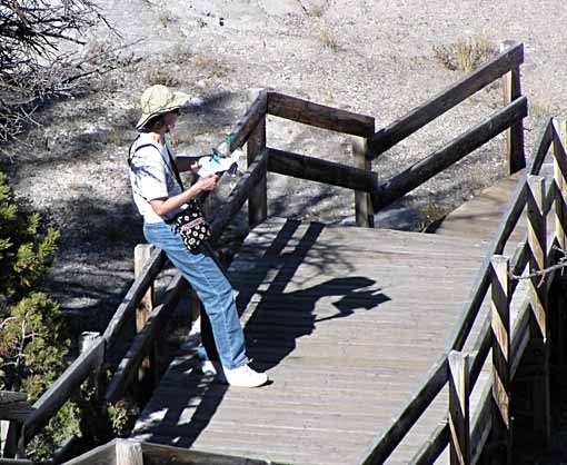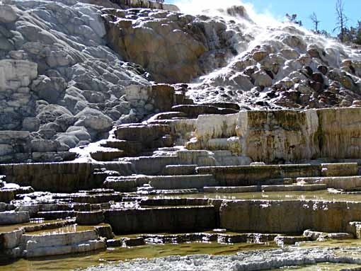 If you ever come to Mammoth Hot Springs, here's what I'd advise. Drive to the Liberty Cap, walk the short trail to Palette Spring, then skip the rest of the Lower Terrace. Drive to the Upper Terrace, park and walk to Canary Spring, the most active and prettiest of the terraced springs. Walk the trail to the highest point, the Overlook. Then drive the rest of the Upper Terrace, stopping at the Orange Spring Mound. The rest is not worth your time, in my opinion. Perhaps things are different in the spring, when the weather is wetter, I don't know, but in the fall that's how things are. Generally the thermal features around Old Faithful are the best in the park.